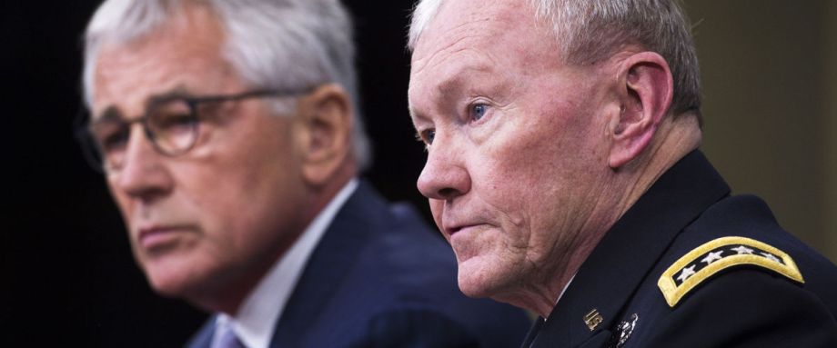 US Secretary of Defense, Chuck Hagel and Chairman of the Joint Chiefs of Staff, Martin Dempsey photographed at the Pentagon on 21 August 2014.[xxii]