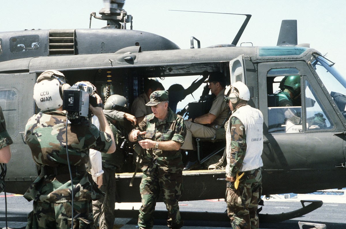 URGENT FURY Published July 22, 2018 at 2850 × 1890 in Operation Urgent Fury, Cold War Crisis in Grenada, October – November 1983 ← Previous Next → Chairman of the Joint Chiefs of Staff, General John W. Vessey Jr., exits a UH-1 Iroquois helicopter upon his arrival to review conditions on the island during Operation URGENT FURY. An audiovisual technician, left, videotapes the event.