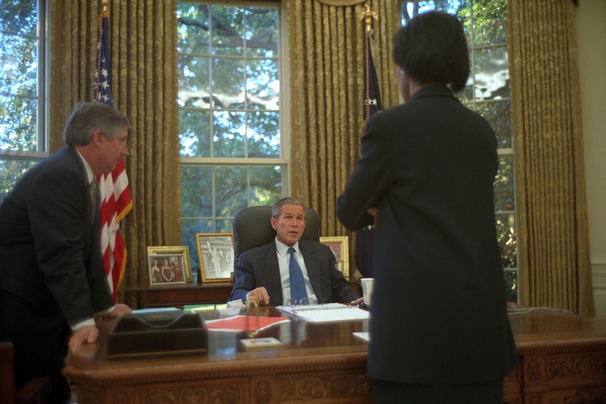 P7126-23 Published June 18, 2020 at 3072 × 2048 in Operation Anaconda: Victory and Defeat in Afghanistan, March 2002 ← Previous Next → President George W. Bush meets with Andy Card and Condoleezza Rice Wednesday, Sept. 12, 2001, in the Oval Office of the White House. Photo by Eric Draper, Courtesy of the George W. Bush Presidential Library